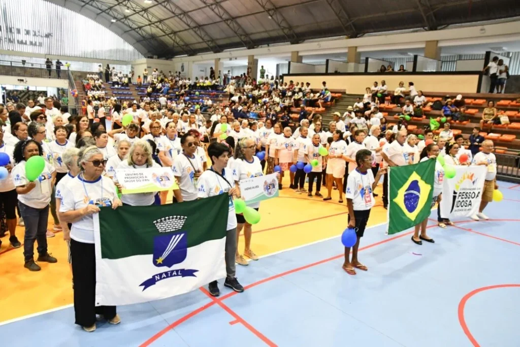 A Prefeitura do Natal abriu oficialmente, na manhã desta terça-feira (16), a 5ª edição dos Jogos Municipais da Pessoa Idosa, evento que tem como objetivo promover o envelhecimento ativo por meio do esporte, da convivência e da valorização da terceira idade. A cerimônia foi realizada no Palácio dos Esportes Djalma Maranhão e reuniu a população junto a cerca de 700 idosos das quatro regiões da cidade — o maior público já registrado em todas as edições.
