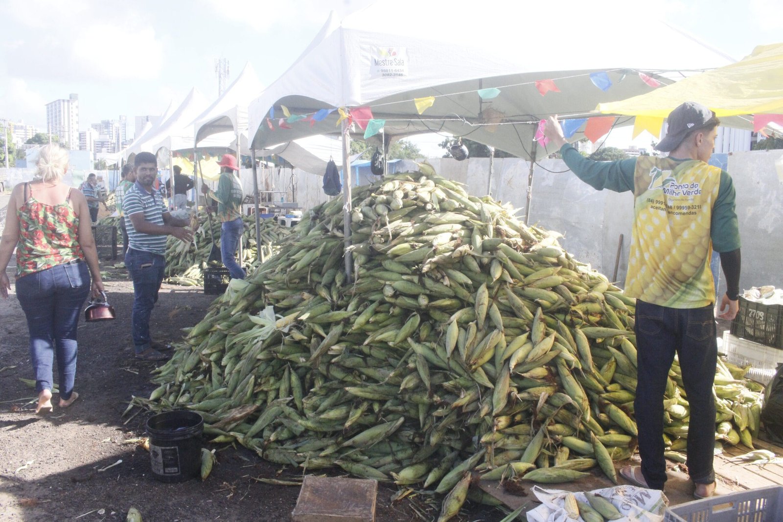 Sheila Bezerra, 37, trabalha com a venda de milho há 21 anos. Além das espigas comercializadas a R$ 40 “a mão”, como o termo popular se refere a 50 espigas, ela produz comidas regionais com a família, sendo mais uma opção para o consumidor.