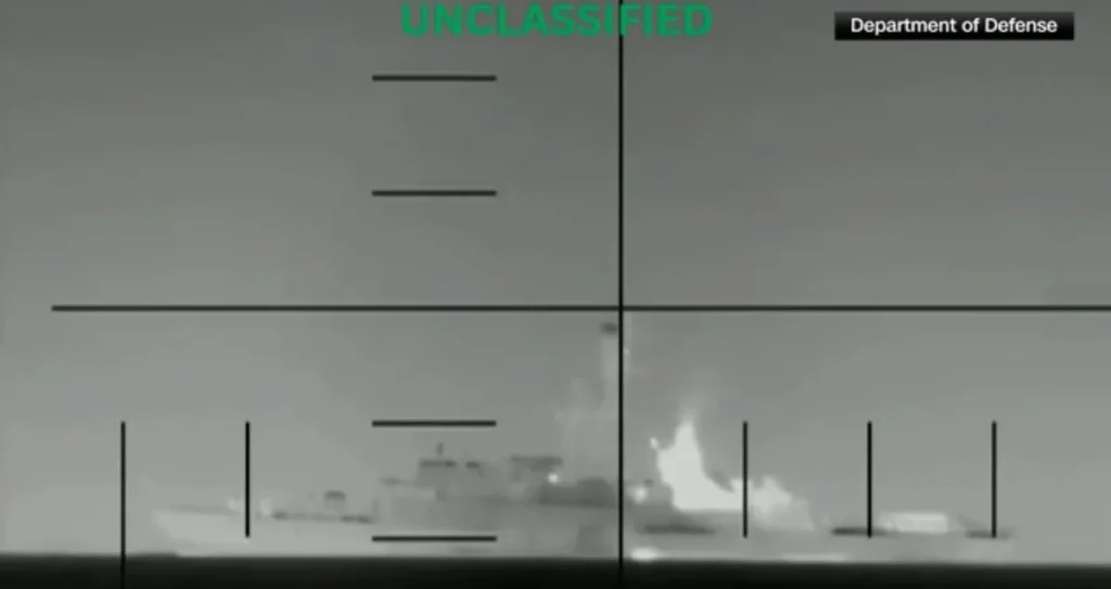 “O primeiro afundamento de um navio inimigo por torpedo desde a Segunda Guerra Mundial”, acrescentou Hegseth.