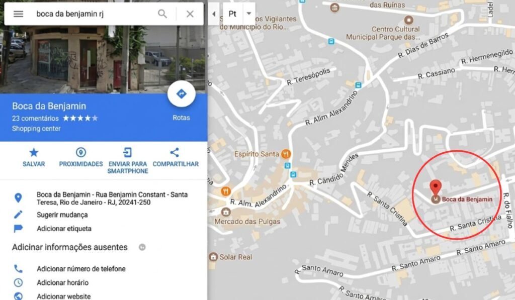 As bocas de fumo no Google Maps incluíam pontos como a comunidade do Jacaré, na Zona Norte, localizada a cerca de 400 metros da Cidade da Polícia, complexo que reúne delegacias especializadas da Polícia Civil.