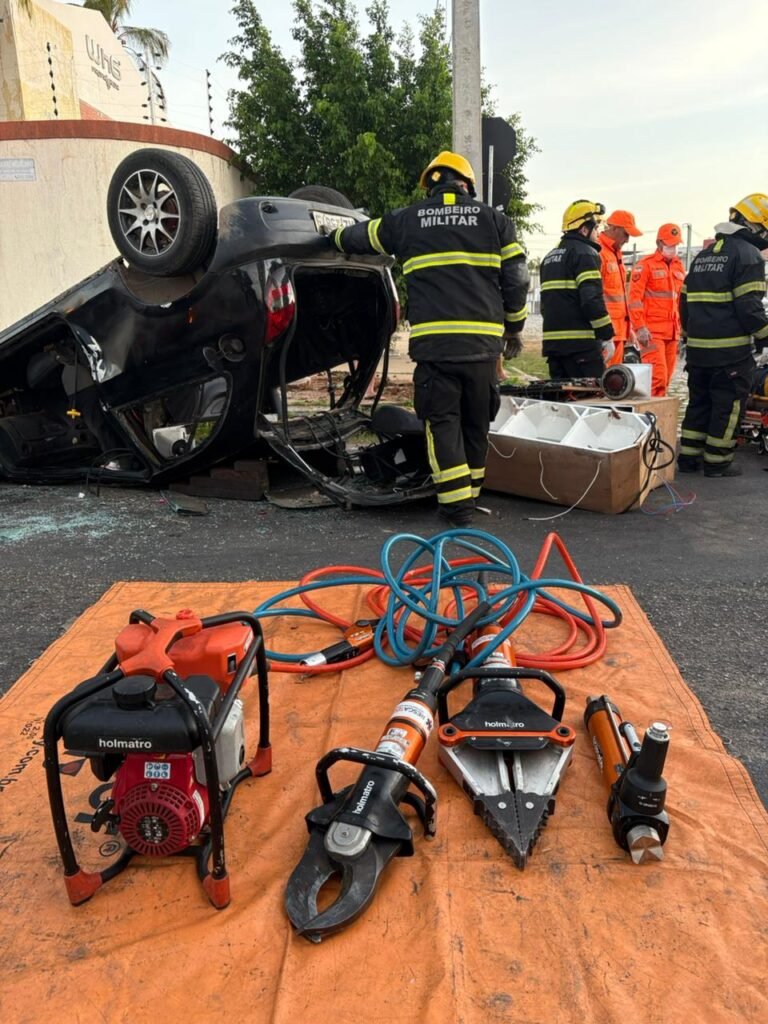 Os bombeiros realizaram o isolamento da área e estabilizaram o automóvel para iniciar o desencarceramento. As portas dianteiras e, posteriormente, a traseira foram removidas para reduzir o peso de caixas de som automotivo que pressionavam a vítima e dificultavam a operação.