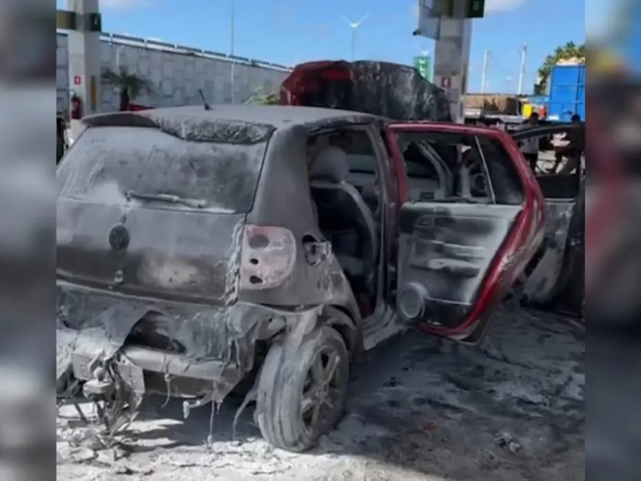 Um carro explodiu durante o abastecimento em um posto de combustíveis, às margens da BR-101, na manhã desta quarta-feira (12), por volta das 6h, em Parnamirim, na região metropolitana de Natal.