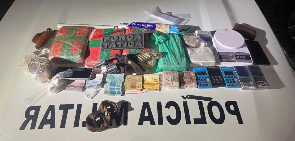 Diante dos fatos, o material apreendido e os envolvidos foram conduzidos à Delegacia de Polícia Civil para os procedimentos cabíveis.