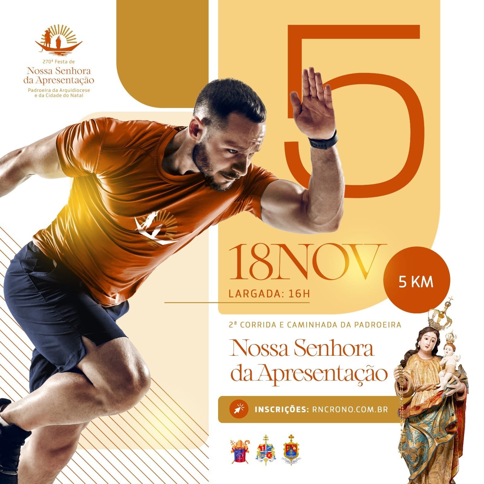 Estão abertas as inscrições para a 2ª Corrida e Caminhada da padroeira de Natal, Nossa Senhora da Apresentação, que será realizada dia 18 de novembro, com largada às 16 horas, em frente à Catedral Metropolitana. Serão disponibilizadas 500 vagas. As inscrições estão abertas no link https://www.rncrono.com.br/405/2o-corrida-e-caminha-da-padroeira-de-natal .