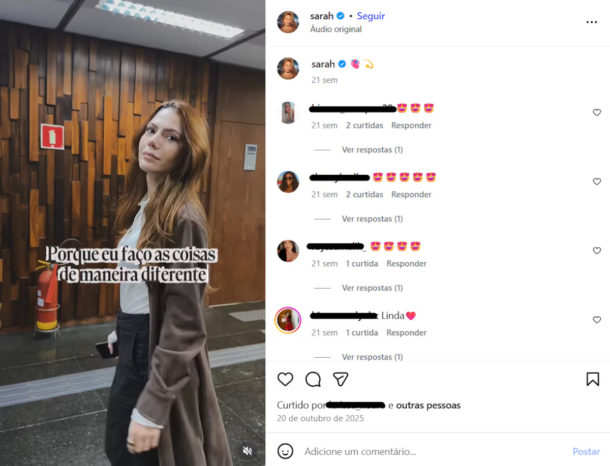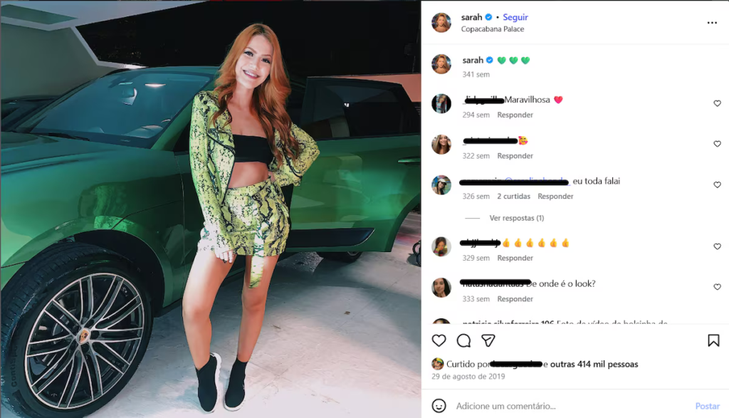 Sarah, por exemplo, tem 3,4 milhões de seguidores no Instagram. Já Saulo tem 2 milhões de seguidores na mesma rede, enquanto sua atual mulher, a influenciadora Caroline Barbosa, conta com 121 mil – Gabi Brandt, ex-mulher de Saulo e mãe de três de seus filhos registra 6,1 milhões de seguidores.