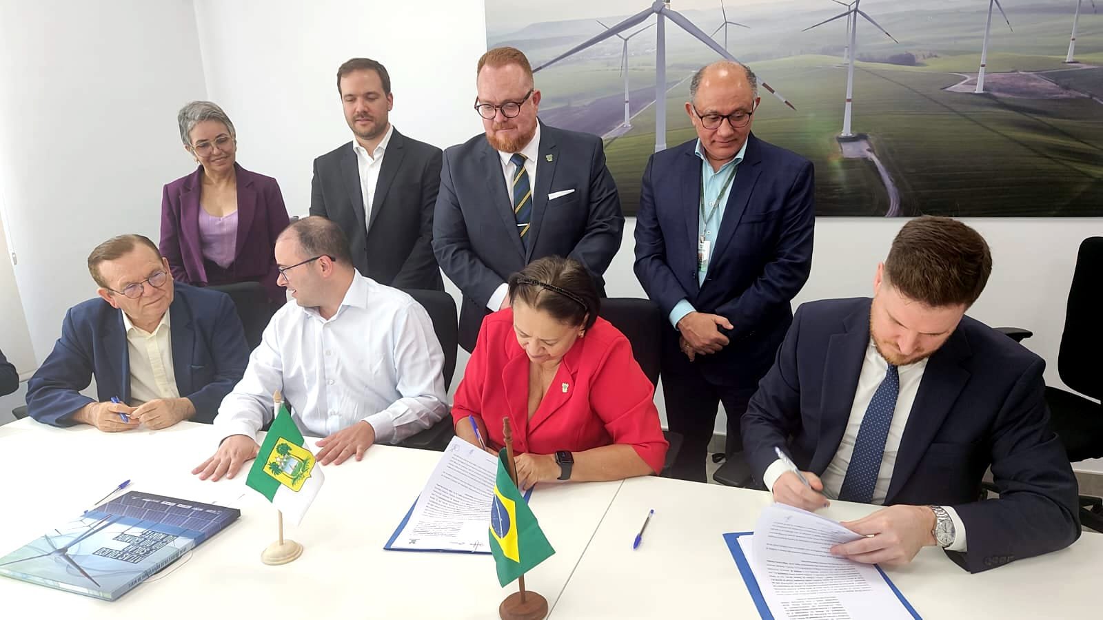 Nesta quarta-feira (4), a governadora esteve na cidade de Puertollano, na Espanha, onde se reuniu com dirigentes da indústria de eletrolisadores Acciona Nordex Green Hidrogen, S.L. e assinou Memorando de Entendimento para o desenvolvimento de cadeia industrial de hidrogênio de baixas carbono e energias eólicas no estado.