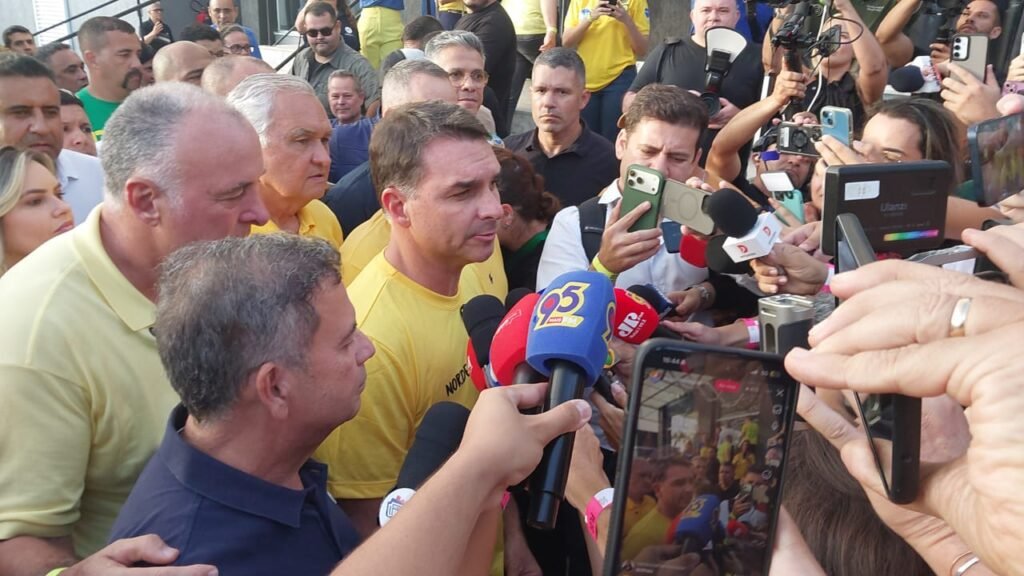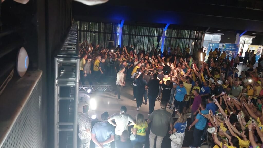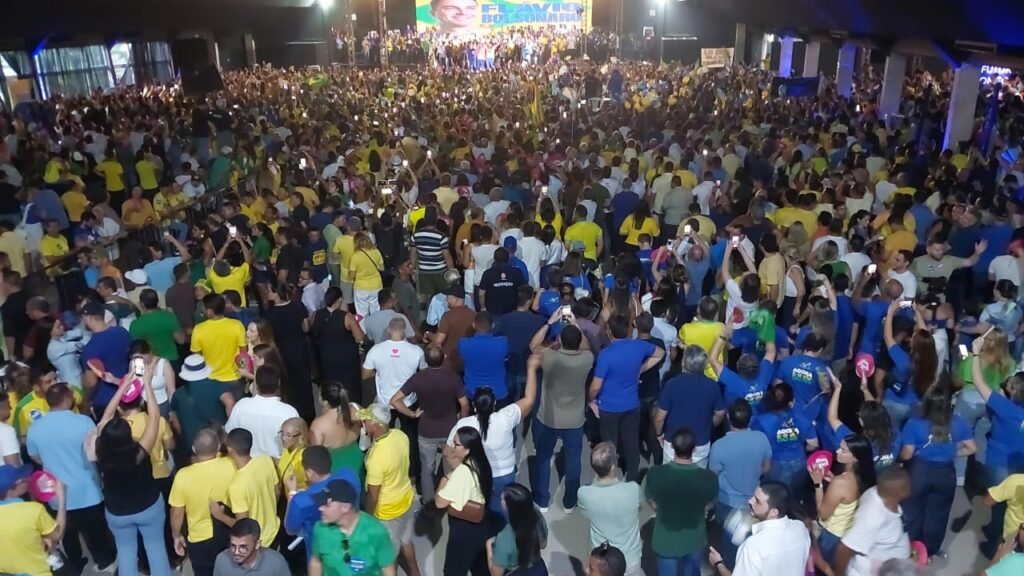 Já no auditório, Flávio informou aos apoiadores sobre o recente estado de saúde de seu pai, o ex-presidente Jair Bolsonaro, segue preocupante e sob cuidados médicos. No entanto, disse acreditar na possibilidade de deferimento da prisão domiciliar. Após hino nacional, todos cantaram parabéns ao ex-presidente, que completa hoje 71 anos. “A situação, combinada com as restrições impostas pelo local onde se encontra, levanta preocupações sobre o isolamento político e pessoal”, disse.
