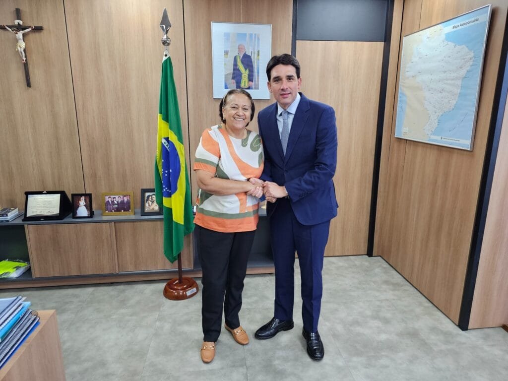 A governadora Fátima Bezerra se reuniu nesta terça-feira (19), em Brasília, com o ministro Silvio Costa, dos Portos e Aeroportos, para acompanhar as tratativas relacionadas à aprovação do Projeto de Lei do Congresso Nacional (PLN 39/23). O projeto vai liberar recursos para a conclusão do processo de relicitação do Aeroporto Internacional Aluízio Alves, em São Gonçalo do Amarante.