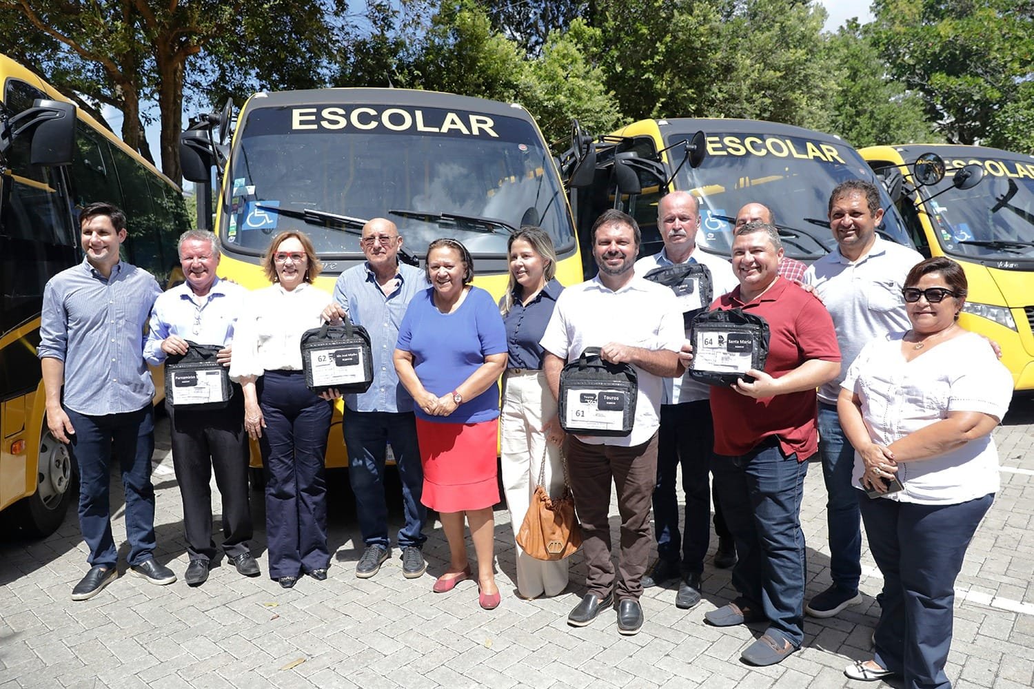 O Governo do RN completou nesta segunda-feira (26) a entrega de 86 novos ônibus adquiridos dentro do Programa Nova Escola Potiguar. Os municípios beneficiados neste último lote são Parnamirim, Pureza, Santa Maria, São José de Mipibu, Touros e Lucrécia. A renovação e ampliação da frota de ônibus escolares têm como objetivo garantir segurança e qualidade ao transporte dos estudantes da rede pública de ensino e contribuir para a redução da evasão escolar.