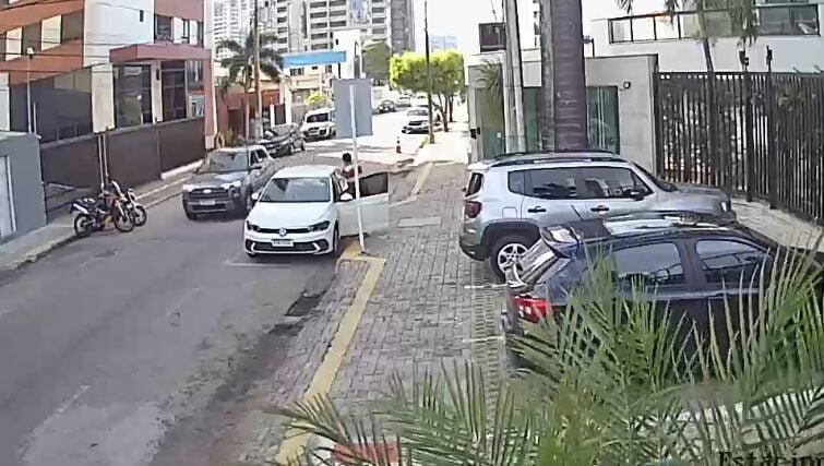 Por volta das 15h40, imagens de câmeras de segurança registraram o momento em que a vítima foi forçada a sair de seu veículo. O suspeito subtraiu seus pertences pessoais, além de objetos que estavam dentro do automóvel. Após o roubo, o suspeito assumiu a direção do carro e fugiu do local.