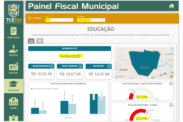 Outro ponto crítico está no uso dos recursos do FUNDEB (Fundo de Manutenção e Desenvolvimento da Educação Básica). A legislação determina que no mínimo 70% desses recursos devem ser destinados à remuneração dos profissionais da educação básica em efetivo exercício, porém, em Ielmo Marinho, o percentual aplicado até agora foi de 63,47%, também abaixo do mínimo legal.