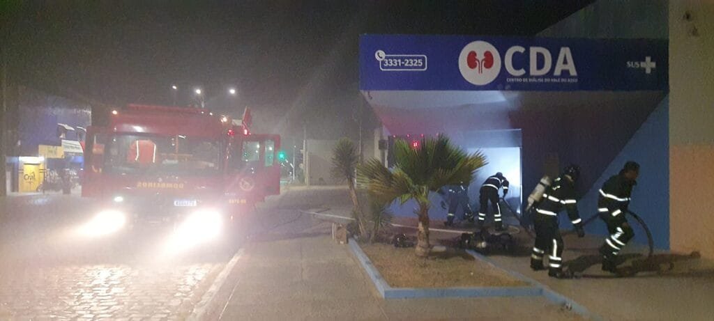 Uma clínica médica especializada em diálise, no bairro Novo Horizonte, em Assú, acabou ficando destruída após um incêndio que atingiu as salas do prédio durante a madrugada deste domingo (1).