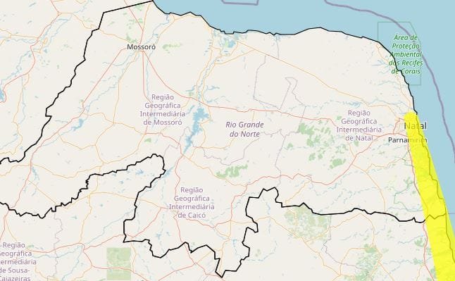 O Instituto Nacional de Meteorologia (Inmet) emitiu um alerta amarelo de “Perigo Potencial” para acumulado de chuva em Natal e em outras 12 cidades do litoral do Rio Grande do Norte. O aviso, que entrou em vigor nesta quinta-feira (10), é válido até as 10h da manhã de sexta-feira (11).