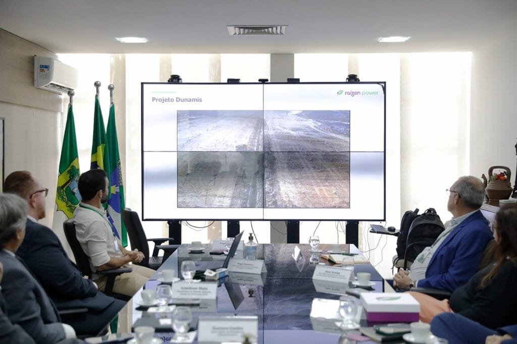 O Governo do Rio Grande do Norte recebeu nesta quinta-feira (09), dirigentes da Raízen Power para tratar da conclusão da implantação do Projeto de geração de energia fotovoltaica Dunamis, no município de Santana do Matos, na região Central.