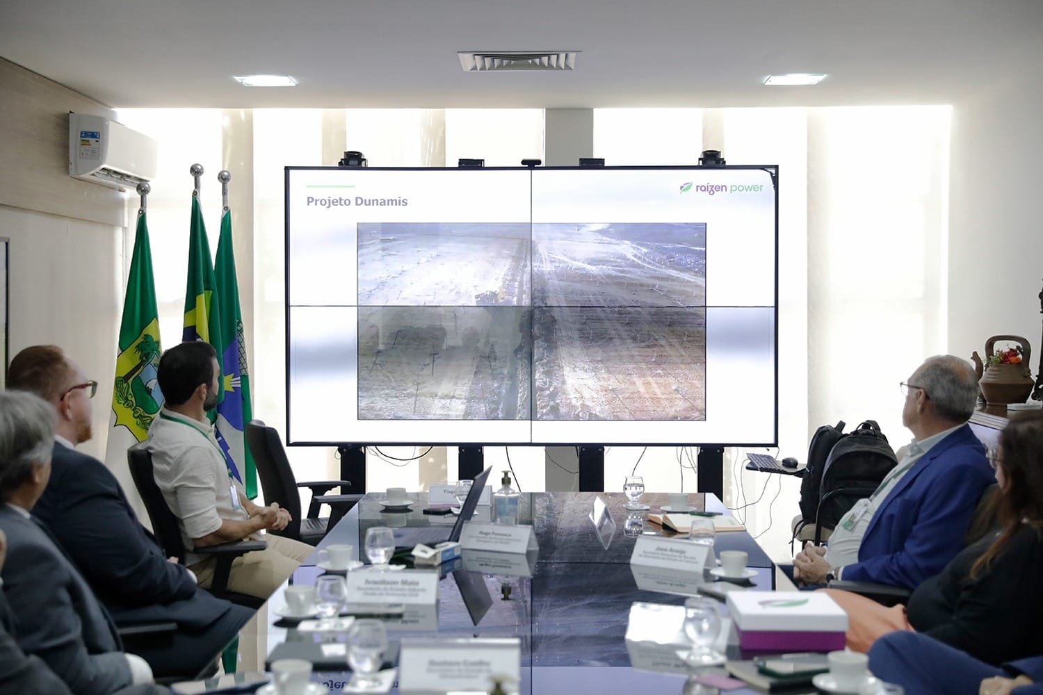 Na reunião com os dirigentes da Raízen Power – grupo que também atua no setor sucro-alcooleiro (açúcar e etanol), bioenergia e distribuição de combustíveis derivados de petróleo, também participaram os secretários de Estado, Jaime Calado (Sedec), Gustavo Coelho (Sin), adjunto do Gabinete Civil, Ivanilson Maia, desenvolvimento energético da Sedec, Hugo Fonseca, secretaria executiva de receita da Sefaz, Jane Araújo e o diretor administrativo do Idema, Marcílio Lucena.