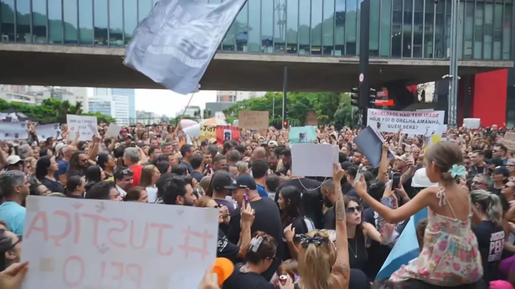 Nadini Marini, presidente do Instituto Amor em Patas, disse que sentiu uma “sensação única” ao ver a quantidade de pessoas no ato. “É uma das primeiras vezes que isso acontece em uma escala tão grande, em que um caso impacta tantas pessoas. Conseguimos unir tantas pessoas com o mesmo propósito. A gente quer justiça para esse e para todos os outros casos que passam despercebidos por muita gente”, disse.