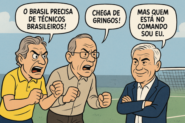 Oswaldo e Leão resolveram dar uma aula de patriotismo técnico justamente na frente de Ancelotti — o professor italiano que está fazendo o que eles nunca conseguiram: comandar a Seleção Brasileira. O mais curioso é que ambos já ganharam salário em dólar e euro, mas agora lembraram que o “bom mesmo é ser da terrinha”. E as sugestões então? Diniz e Dorival, que já tiveram a prancheta da amarelinha e não aproveitaram. No fim, Ancelotti, com a elegância que falta aos dois, disse o óbvio: o técnico brasileiro perdeu força e precisa evoluir. Traduzindo o recado do italiano: “meus amigos, parem de chorar e aprendam a trabalhar”. O discurso dos dois soou como aquele típico “não é xenofobia, mas…” disfarçado de defesa do futebol nacional.