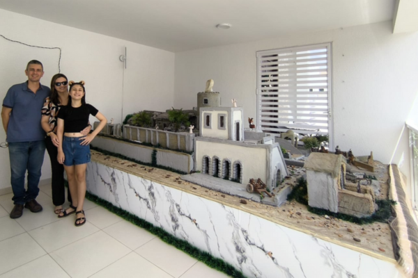 Desde então, o presépio nunca deixou de ser montado e cresceu junto com a família. O que começou em uma pequena mesa de centro, em um apartamento, hoje ocupa cerca de 14 metros quadrados e reúne cenários detalhados. A montagem já recebeu reconhecimento internacional, conquistando o segundo lugar em um concurso online de presépios realizado na Espanha, em 2023.