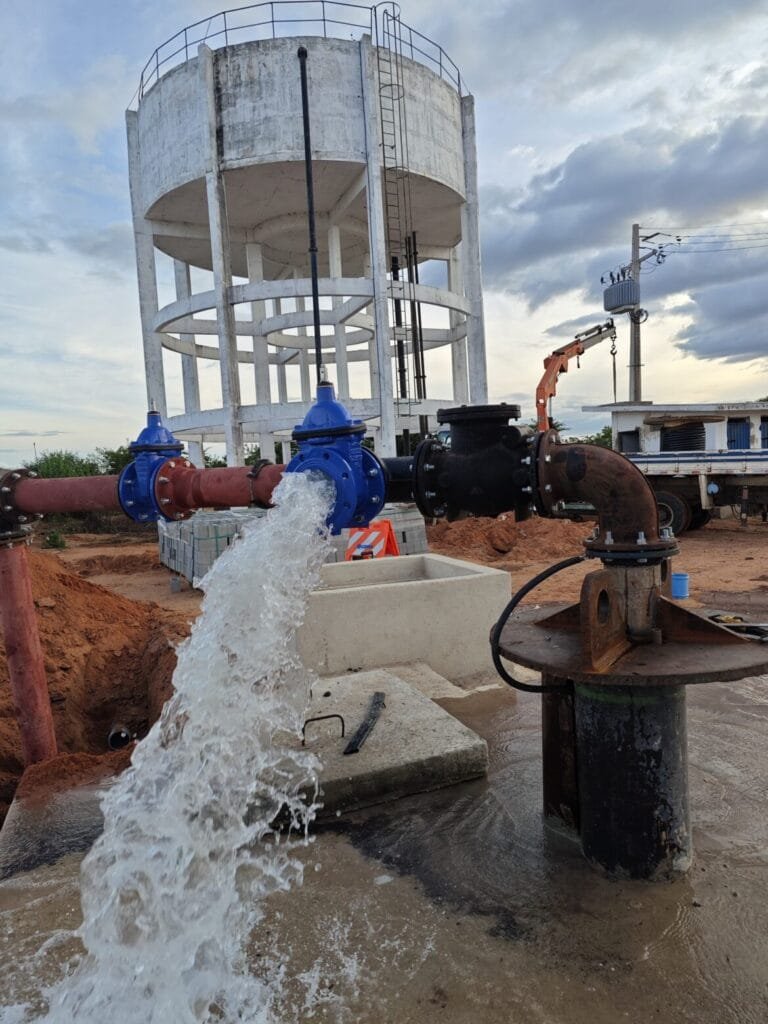 Juntamente com o novo poço também foi ativado o reservatório que tem capacidade para acumular 300 mil litros de água. A água do 33 é armazenada no reservatório e distribuída para os bairros, garantindo pressão adequada. Atualmente, as equipes acompanham o envio de água e fazem os ajustes operacionais necessários para que a área atendida pelo poço tenha um maior alcance.