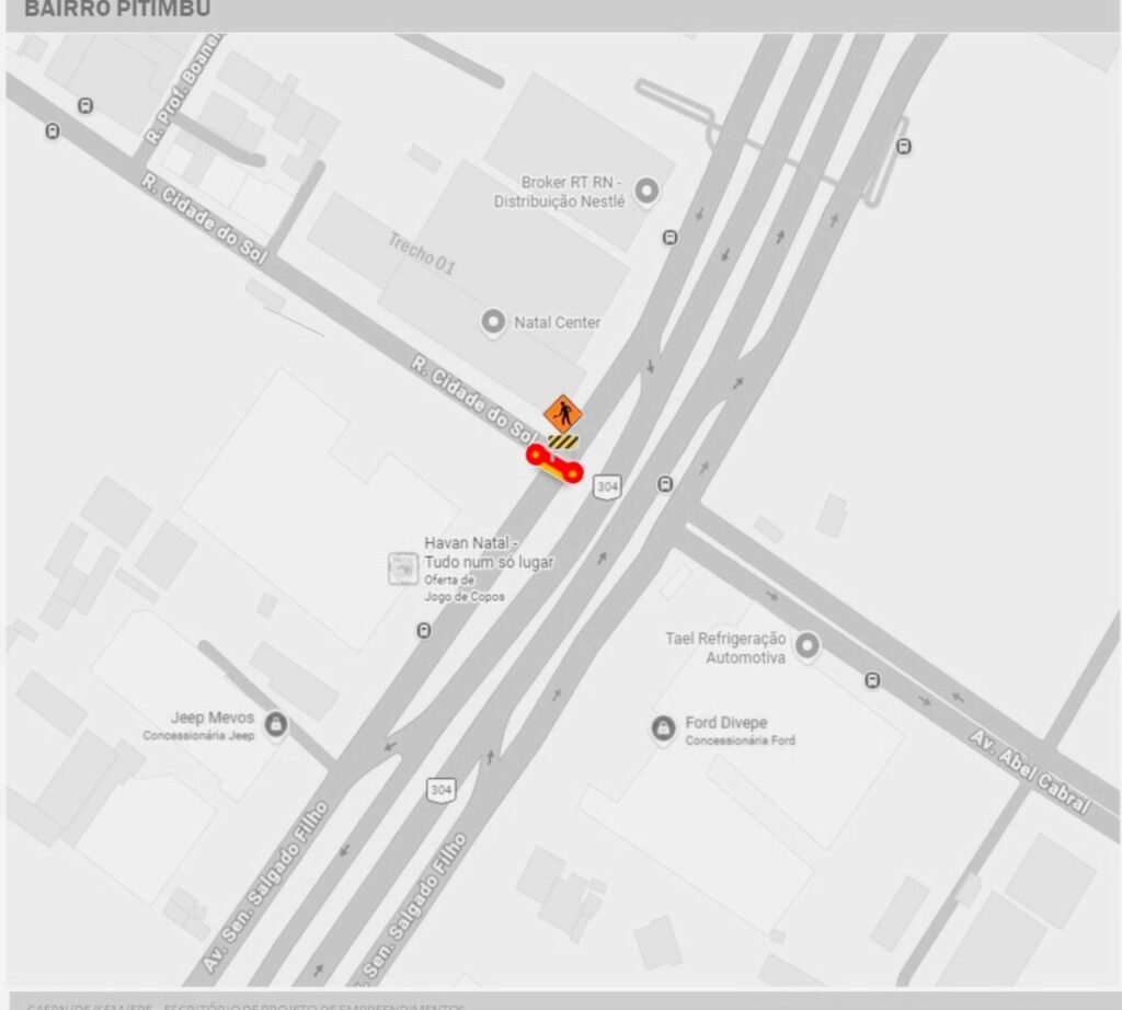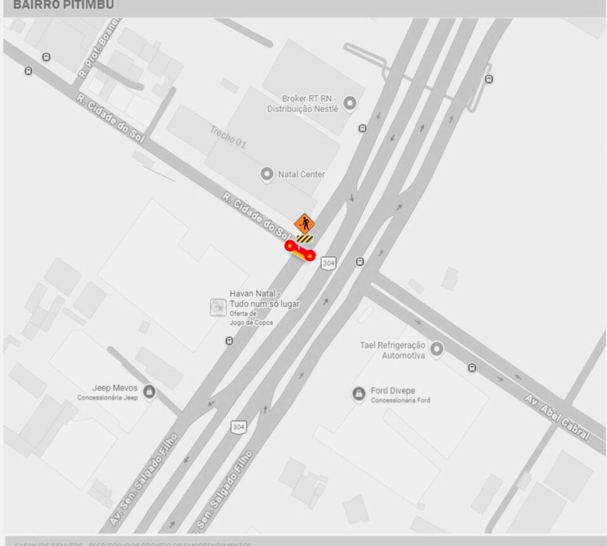 Será executado, no período de 14 a 18 de fevereiro, mais uma etapa da implantação do Sistema de Esgotamento Sanitário da Zona Sul de Natal, desta vez em trecho da marginal da BR-101 na altura de Cidade Satélite, bairro Pitimbu. No sábado (14), a partir das 6h da manhã, haverá a interdição da via, no encontro da marginal com a Avenida Cidade do Sol, na entrada de Cidade Satélite. Essa interdição durará o tempo de execução dos trabalhos.