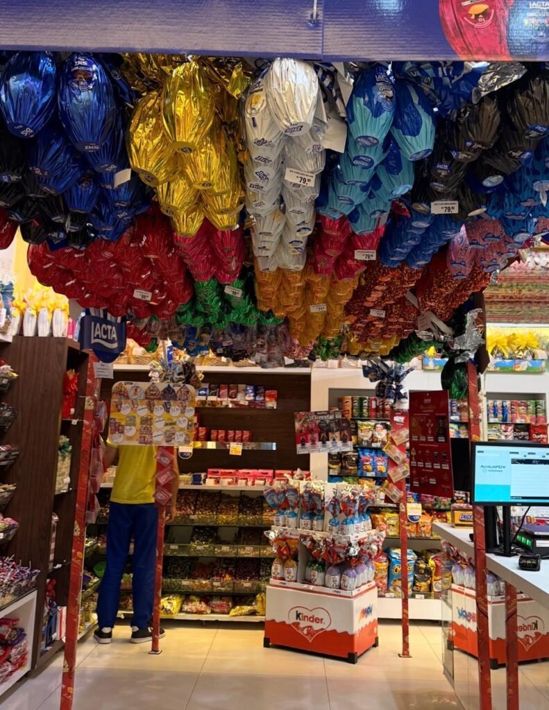 A Supermercados e lojas especializadas em chocolates vivem intensamente o clima da Páscoa. Nas vitrines, produtos expostos, combos promocionais e muitos apelos visuais e olfativos para atrair o consumidor. A expectativa é que nesta semana que antecede a data o comércio fique mais movimentado e aquecido. Dados da CNDL e do SPC Brasil, com projeção da CDL Natal, apontam que cerca de 106,8 milhões de brasileiros devem ir às compras neste período.
