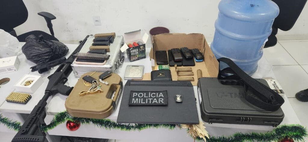 Populares relataram à equipe policial que a residência em questão apresentava movimentação suspeita durante a noite e madrugada. Com a autorização da vítima, os agentes entraram no imóvel e localizaram diversos itens ilícitos, incluindo: uma pistola Taurus calibre .380; 92 munições de calibre .380; 12 munições de calibre 9mm; três carregadores de pistola .380; dois carregadores de pistola 9mm; uma balança de precisão SWZ; uma porção de substância análoga à maconha; dezenas de chips de celular e R$ 132 em moedas e cédulas fracionadas.