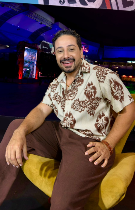 Uma pose para azamigas: Diego Negrellos nos bastidores do Festival Mada. Ao lado de Kelly Vieira, o jornalista comandou a transmissão para 45 emissoras Globo, Globo Play e G1 RN. Deixe ele, com as coisinhas dele, pois ele arrasa!