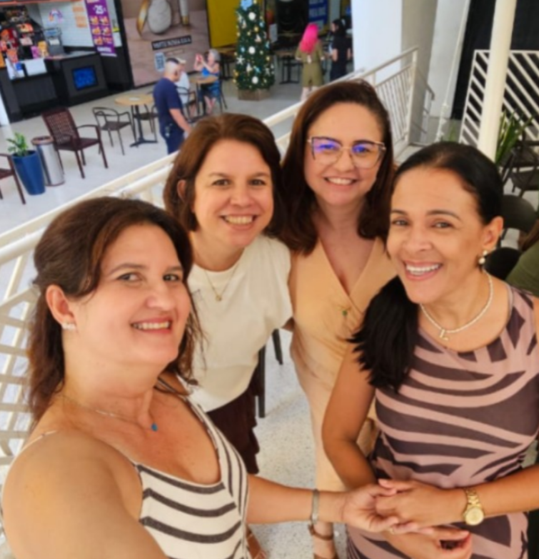 Durante o café de lançamento do “Natal na Imensidão do Mar – O Tesouro da Família”, o clima natalino tomou conta do Praia Shopping. Na foto, a gerente geral Danielle Leal, a assessora de imprensa Jeanny Damas e as lojistas Lucielene Moraes (Restaurante Zamô) e Beth Silva (Natura), que celebraram juntas o início de uma temporada repleta de brilho, aromas e boas energias. É a nossa cidade já entrando em clima natalino! Show!