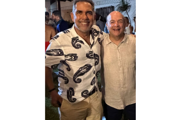 Na foto Sérgio comemora ao lado do empresário Addon Gosson, leia-se Arituba Turismo. Uma celebração que une reconhecimento, conquistas e novos desafios.