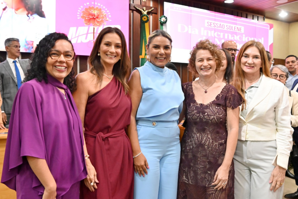 Bancada feminina da Assembleia Legislativa do RN durante a sessão solene em homenagem ao Dia Internacional da Mulher, na terça-feira (10). Em destaque, as deputadas Divaneide Basílio, Cristiane Dantas, Eudiane Macedo, Isolda Dantas e Terezinha Maia, que formam a bancada feminina da ALRN. A sessão foi marcada por homenagens e reconhecimento a mulheres que se destacam em diversas áreas da sociedade. A iniciativa partiu da Procuradoria Especial da Mulher da ALRN.