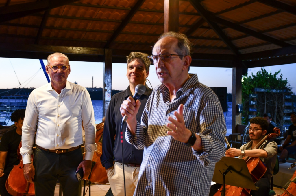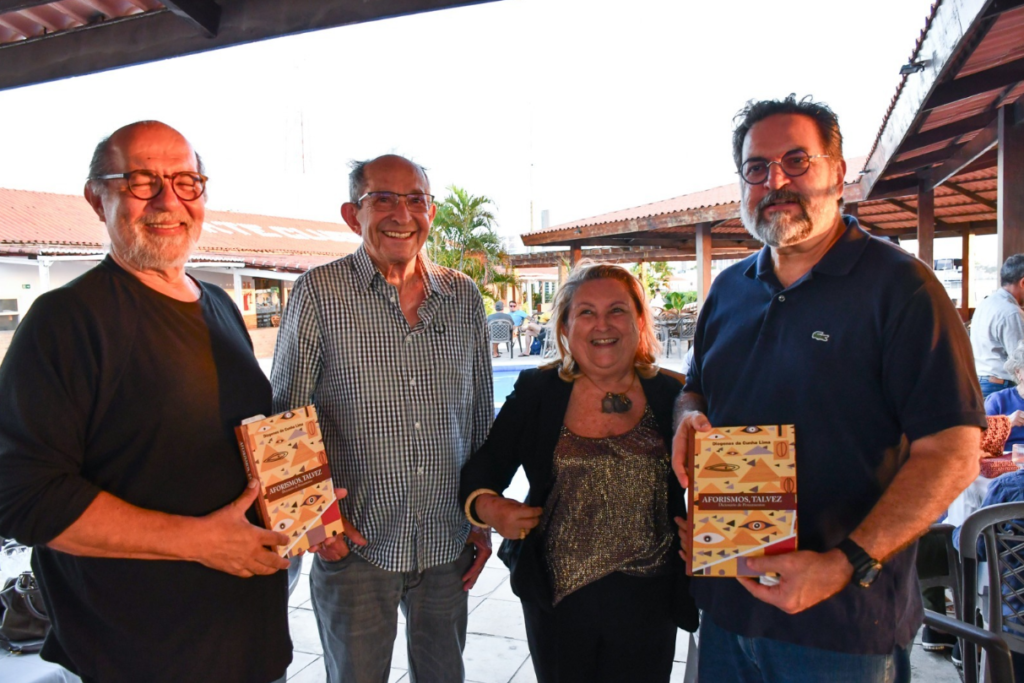 O advogado, poeta, escritor e presidente da ANL, Diogenes da Cunha Lima apresentou seu mais novo livro, “Aforismos, Talvez – Dicionário de Pensamentos”, no Iate Clube de Natal. Na sua 38ª obra, reúne reflexões em forma de aforismos, fruto de um ritual que o autor cultiva há anos: todas as manhãs se dedica à leitura de poesia e à escrita de pensamentos. O evento teve apresentação musical sob regência do maestro Fábio Presgrave e dos violoncelistas da Escola de Música da UFRN. O coquetel teve assinatura de Renata Motta.
