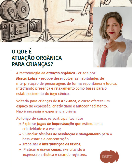A atriz e preparadora de elenco Márcia Lohss lança em Natal o curso “Atuação Orgânica para Crianças”, de 8 a 12 anos, que desenvolve autoconfiança através da metodologia da atuação orgânica, criada pela própria Márcia. Durante três meses ocorreram encontros semanais com jogos de improvisação, técnicas de respiração, interpretação de textos e gravação de cenas. As aulas acontecem no espaço da Cardeiro, na Cidade Alta. A Turma I será às terças-feiras, a partir de hoje, e a Turma II aos sábados, com início em 21 de março. A mensalidade é de R$ 250 e as vagas são limitadas. Informações e inscrições pelo e-mail contato@cardeiro.art.br.