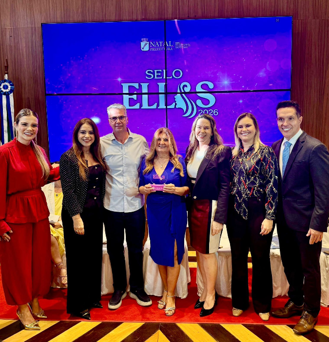 O DNA Center foi uma das empresas destaques do Selo Ellas 2026, promovido pela Prefeitura do Natal, através da Secretária das Mulheres e entregue nesta segunda-feira (30). A iniciativa reconhece empresas e instituições que incentivam a mulher no mercado de trabalho. O evento reforça a importância da equidade de gênero no ambiente profissional. O DNA Center ganha evidência por suas práticas e compromisso com a inclusão. A empresa tem se destacado pela valorização de mulheres em sua equipe e em cargos de liderança. O Selo reforça o papel do executivo no incentivo à igualdade. Na foto os sócios do DNA Center, Roberto Chaves, Gioconda Leão e Andrea Fernandes com a vice-prefeita de Natal, Joana Guerra, o presidente da Câmara, Ériko Jácome, a secretaria de Políticas para Mulheres de Natal, Andréa Dias, e a secretaria adjunta, Midiany Avelino.