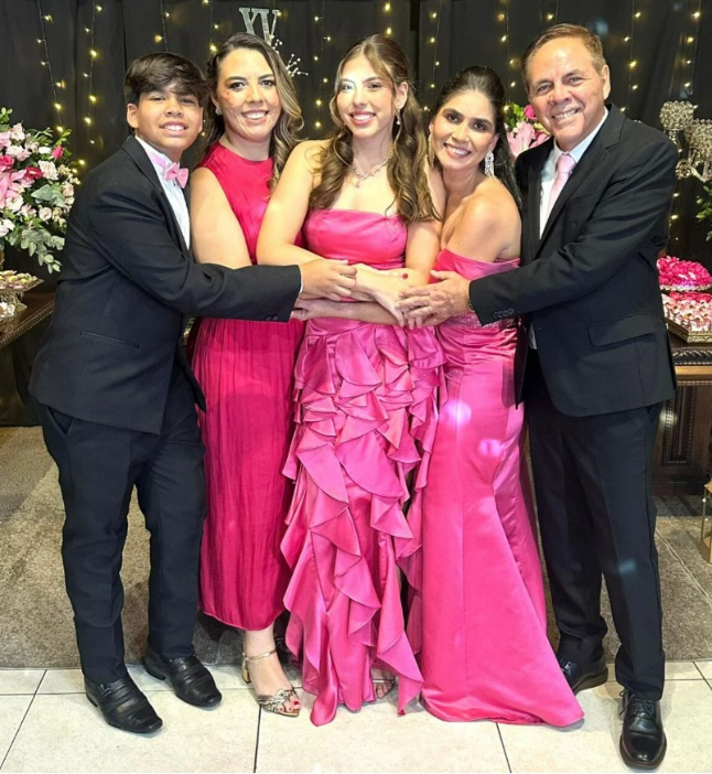 Na sexta-feira (10), Laura Lira celebrou seus 15 anos no Solar Imperial, em Lagoa Nova. A decoração teve tons de rosa, com buffet da Engenho Culinário, by Fabiana Lira, mãe da aniversariante. Entre brindes de espumante rosé, Old Parr e bebidas diversas, a noite foi de pura celebração. As mesas, com soulplats dourados e arranjos de jasmim e rosas, deram um toque sofisticado ao ambiente. Destaque para a mesa principal com bolo e docinhos, além da charmosa recepção com café e bem-vividos. Laura usou dois vestidos: um longo moderno para recepcionar e outro no estilo princesa para a valsa com o pai, o juiz Federal, Ivan Lira, acompanhado pela mãe Fabiana. A animação ficou por conta de Thiago Novaes e DJ Anjinho. O cerimonial foi conduzido pela 520 Eventos. Foto Bebeto Torres (Território Livre).