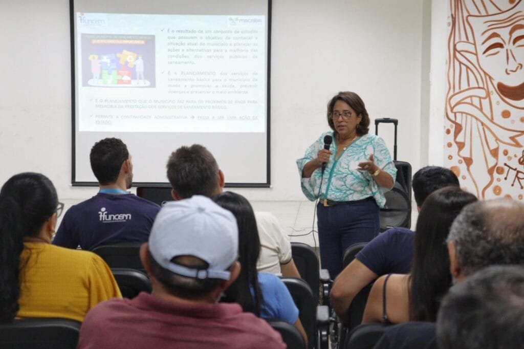 Na oportunidade, a professora Régia Lúcia Lopes, representando a Fundação de Apoio à Educação e ao Desenvolvimento Tecnológico do Rio Grande do Norte (Funcern) fez uma apresentação sobre o conceito de saneamento e sobre a importância de um município ter um plano para o setor para poder captar recursos para o meio ambiente e se desenvolver de forma sustentável.