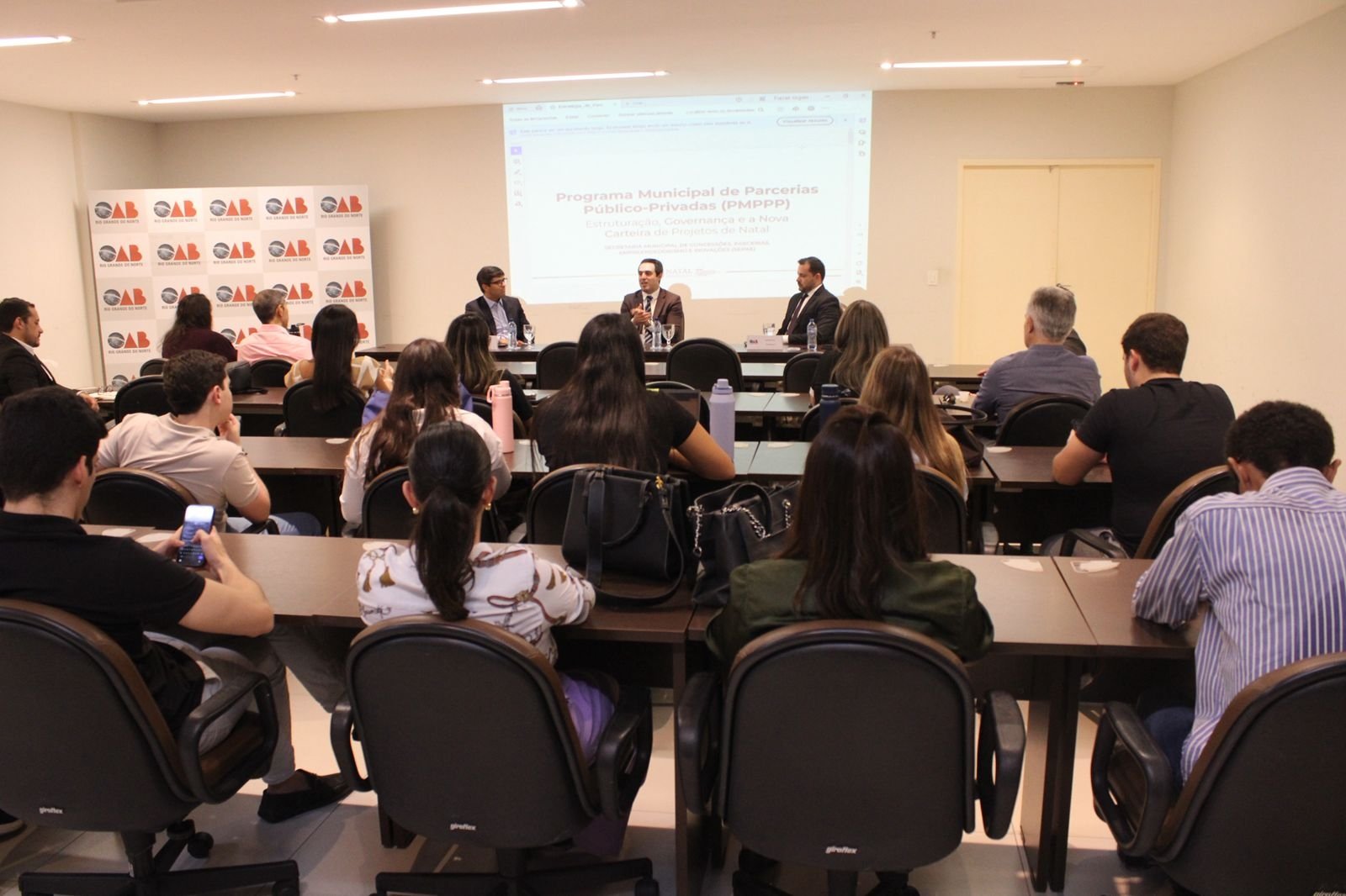 A Secretaria Municipal de Concessões, Parcerias, Empreendedorismo e Inovações (Sepae) participou, nesta terça-feira (17), de um minicurso sobre parcerias público-privadas (PPPs) promovido pela Comissão de Direito e Economia da OAB/RN. A atividade foi realizada na Câmara de Julgamento da instituição e reuniu representantes do meio jurídico, acadêmico e técnico.