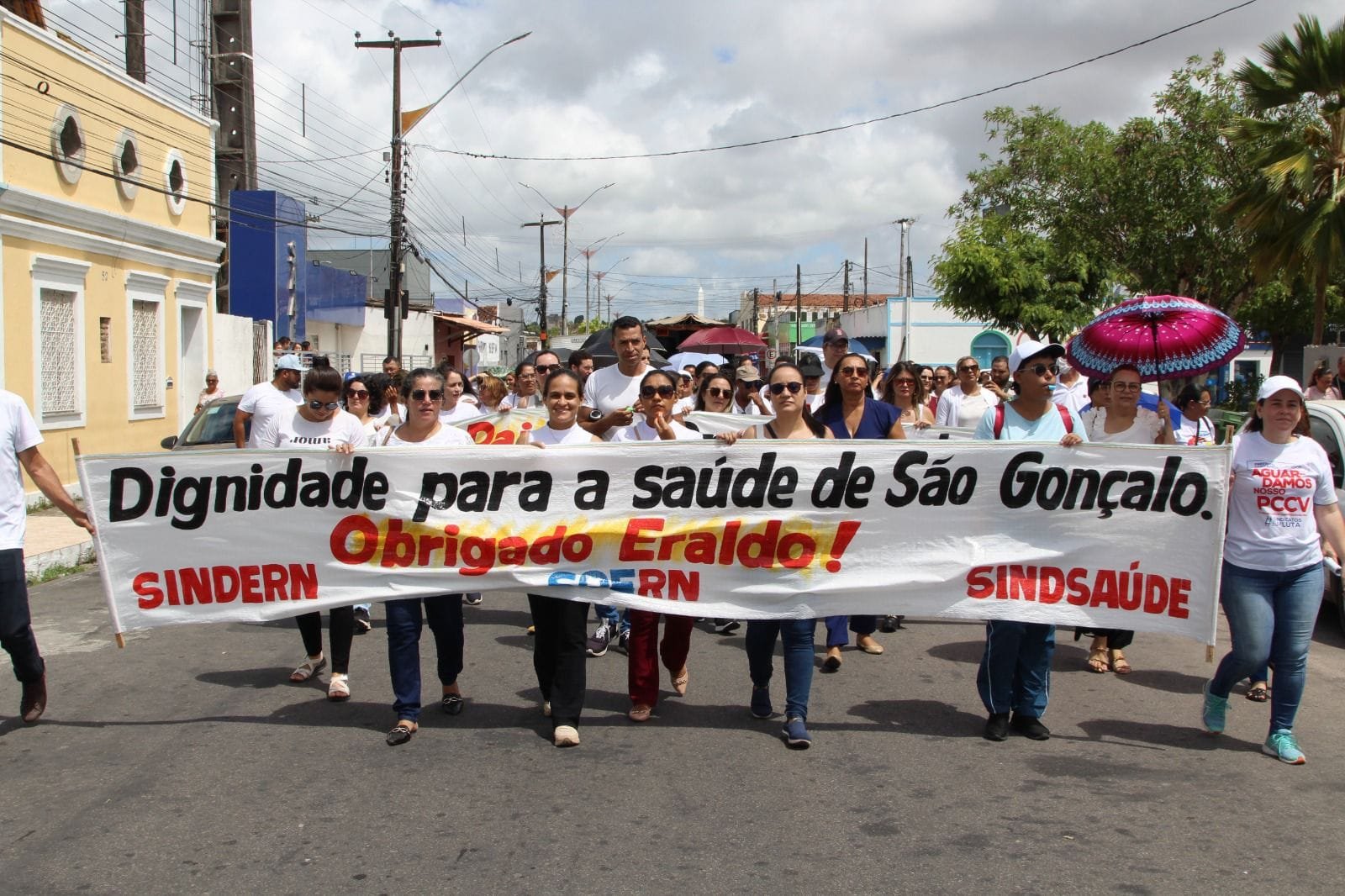 Em ato simbólico que marcou a entrega do Plano de Cargos e Salários dos servidores da saúde ao presidente da câmara municipal, colaboradores da área estiveram ao lado do prefeito Eraldo Paiva, empunhando faixas e cartazes pedindo a aprovação da matéria pelo legislativo.
