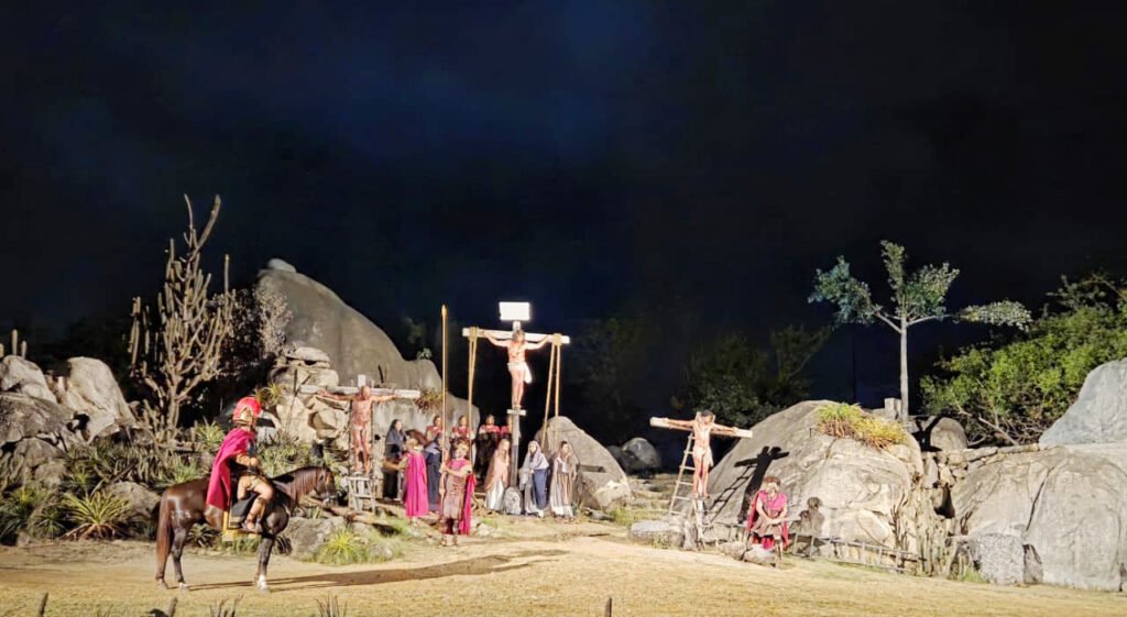 No período de 28 de março a 4 de abril, o público terá mais uma vez a oportunidade de mergulhar em uma experiência imersiva, assistindo a uma encenação realizada em nove palcos-plateia monumentais. Os cenários ocupam uma área de aproximadamente 100 mil metros quadrados, cercados por muralhas de pedra granítica e torres imponentes que reproduzem com fidelidade a arquitetura judaica e romana da Jerusalém de dois mil anos atrás.