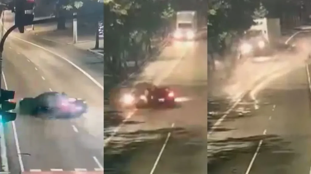 A Porsche Boxter estava em alta velocidade quando invadiu a contramão e bateu em dois veículos. O primeiro, um Fiat Siena, foi destruído, enquanto o segundo, que era um caminhão, seguiu normalmente pela via.