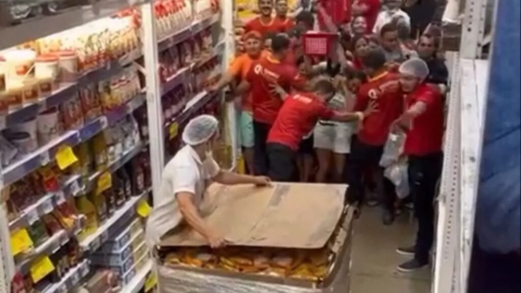 Vídeos que circularam rapidamente nas redes sociais mostram dezenas de clientes correndo pelos corredores, empurrando-se e até entrando em brigas para garantir os pacotes do produto. Em meio aos gritos e à correria, é possível ver pessoas disputando as mercadorias diretamente das caixas e dos carrinhos de compra.