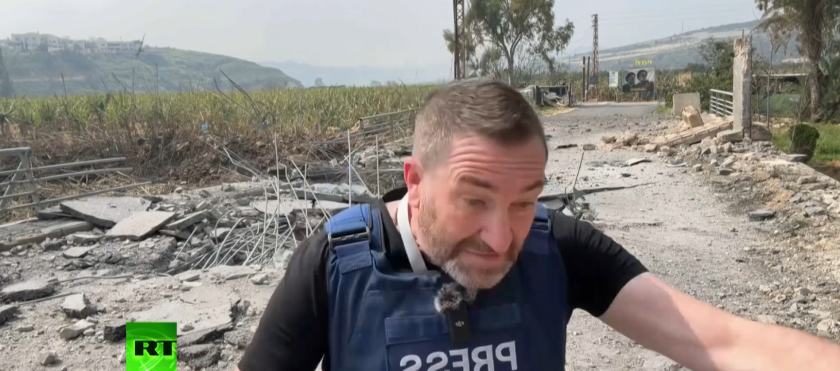 Uma gravação mostra o momento em que um repórter da TV estatal russa RT escapou por pouco de um míssil durante uma cobertura no sul do Líbano.